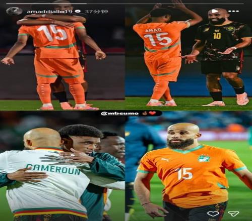 在今天凌晨进行的非洲杯小组赛第2轮比赛中,科特迪瓦1-1战平喀麦隆,比赛结束后,阿马德-迪亚洛在社交媒体上晒出了自己与姆伯莫的合照。