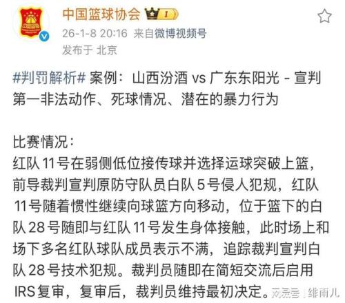 但是,球迷的舆论再度将CBA裁判推向风口浪尖上,毕竟比赛中的慢镜头回放转播是所有球迷都能看清楚的存在,中国篮协不得不进行处理。如果山西队后续进一步增大比赛的动作,裁判继续纵容迪亚洛,那么必然会有球员因此而遭遇重伤。届时,CBA联赛的品牌将会遭遇巨大的损失,中国男篮国家队也可能会遭到伤病的侵袭。所以,即便是CBA裁判承认错误坚决不改,但是其他球队遭遇了不公的待遇仍然需要上诉与抵制。否则,接下来总会有CBA球队遭遇重大伤病,到时候篮协再来重整CBA裁判队伍就来不及了。