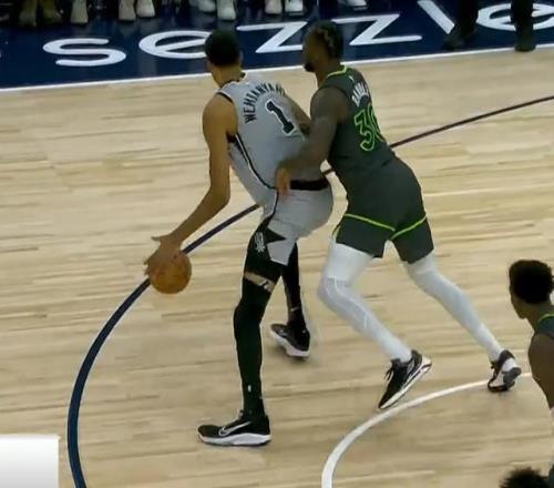 在决胜时刻,因为文班被兰德尔锁死,华子找回手感连续得分,马刺这边只有福克斯能给予回应。最后两个回合,华子单挑文班打进抛投,轮到文班接球进攻时,兰德尔又贴上来了,先用下盘卡住位置,文班突破的时候给他对抗,但不到吹阻挡犯规的尺度,逼得文班选择跳投,最终尽力封堵,文班打铁,比赛结束。